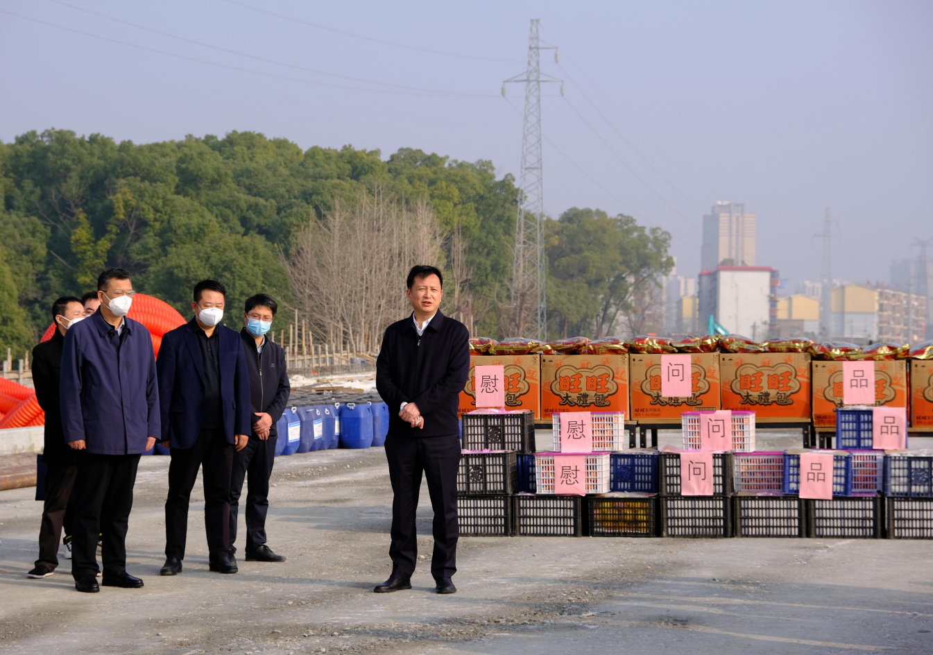 春节来临之际,1月10日下午,市委常委、副市长肖云走访慰问丹霞路道路及综合管廊项目现场一线工人,并察看项目建设进展情况,市公建中心主任熊伟、市住建局副局长池建林、市建投集团副总经理罗辉陪同。